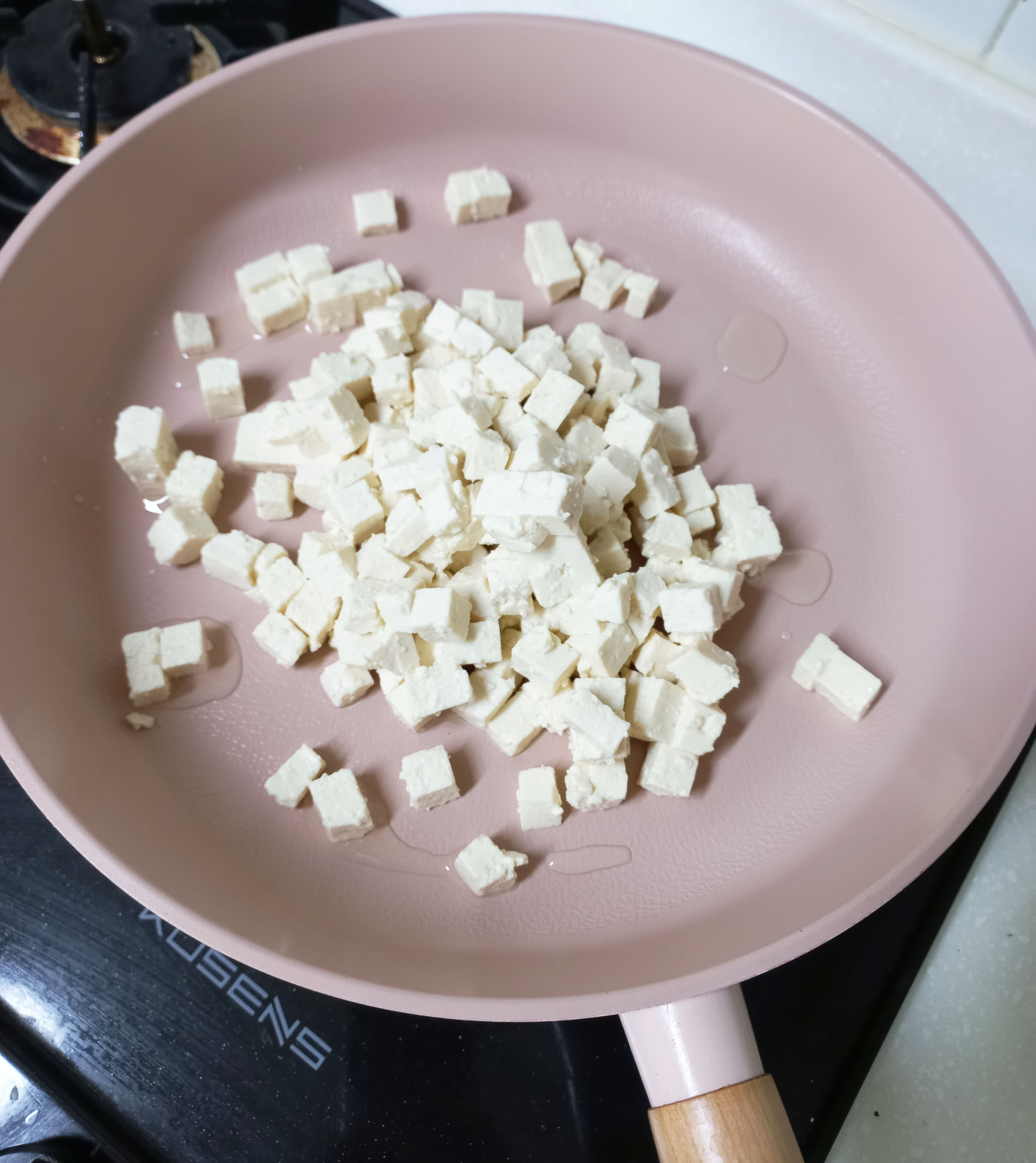 팬에 식용유를 두르고 두부를 노릇노릇하게 구워주세요.