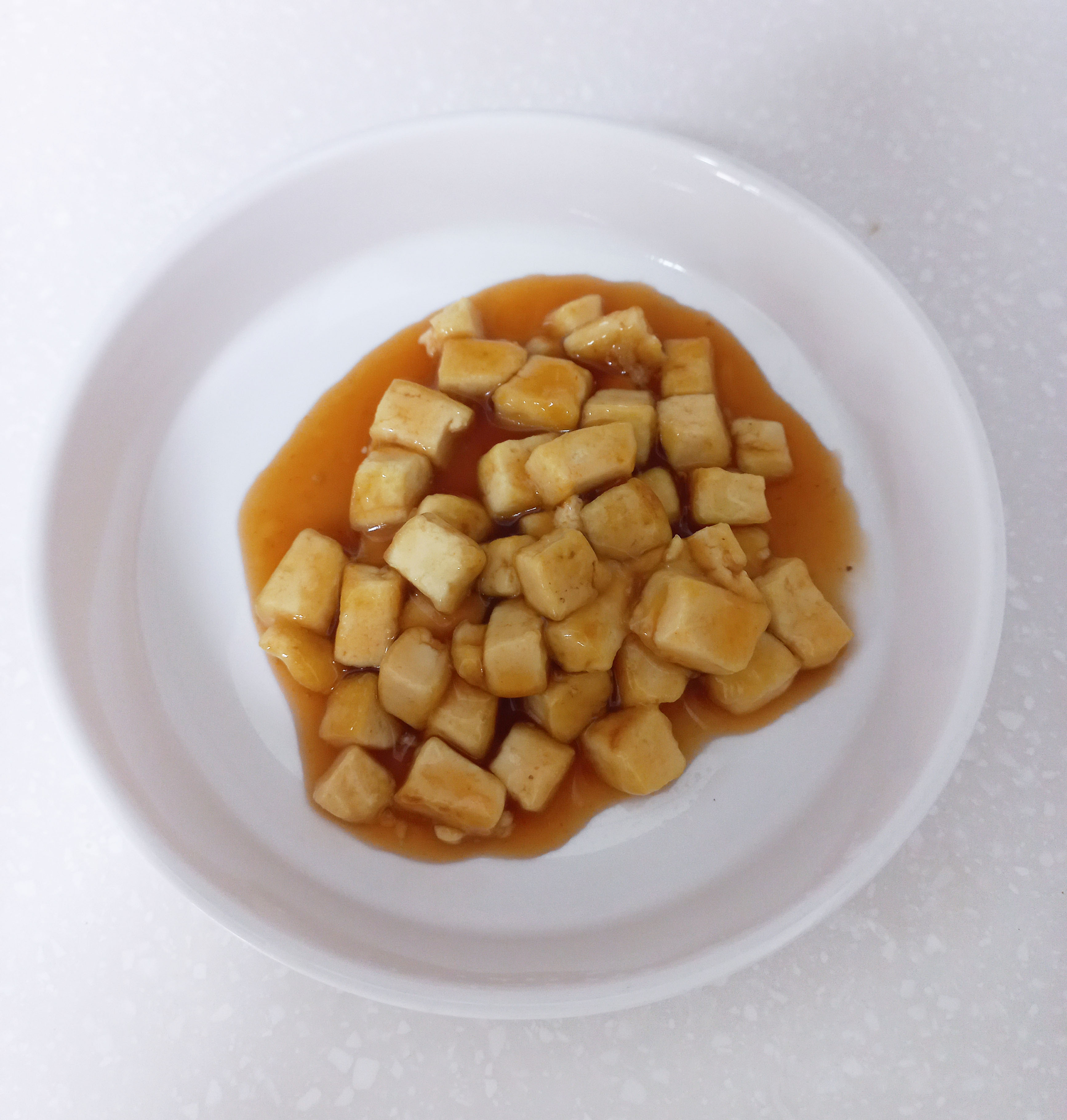 소스가 완성되면 두부를 넣고 섞어줍니다.